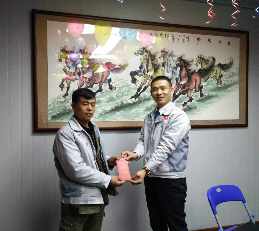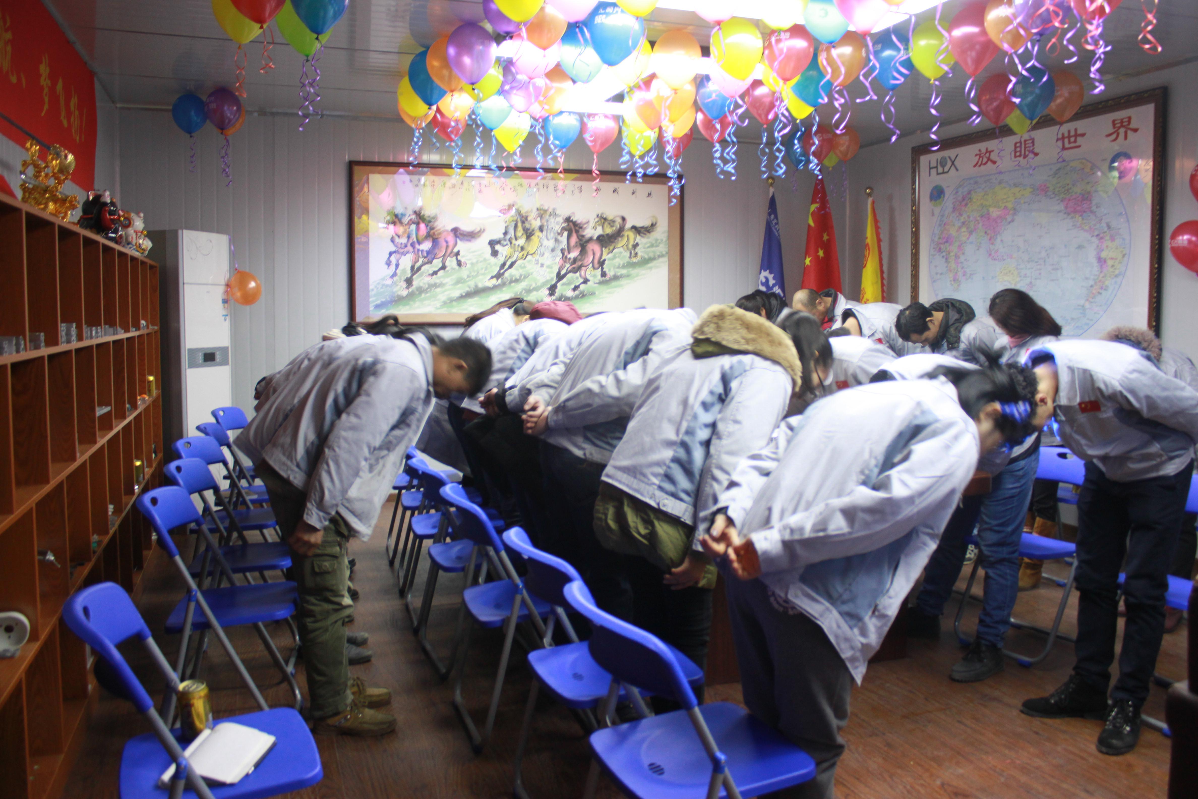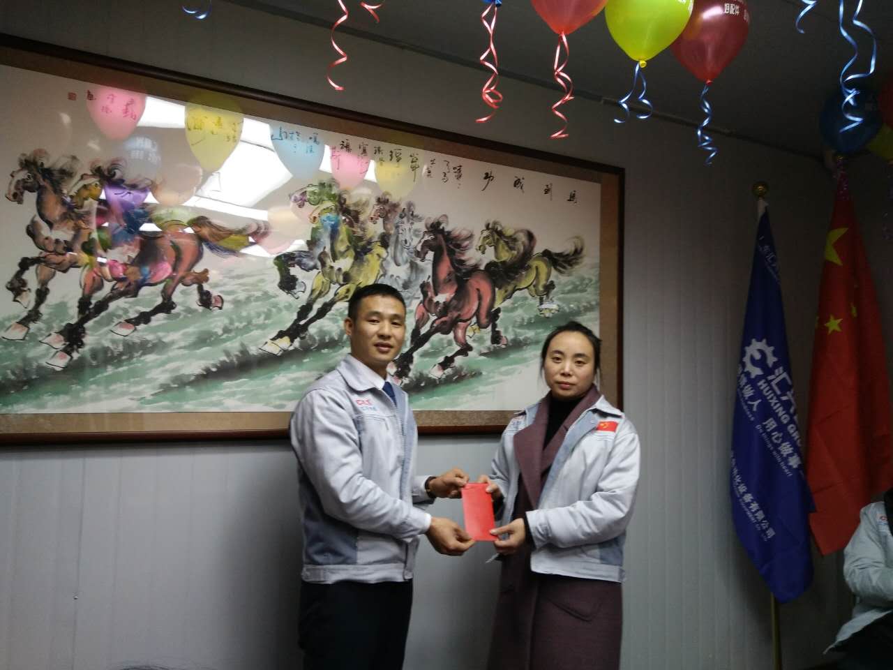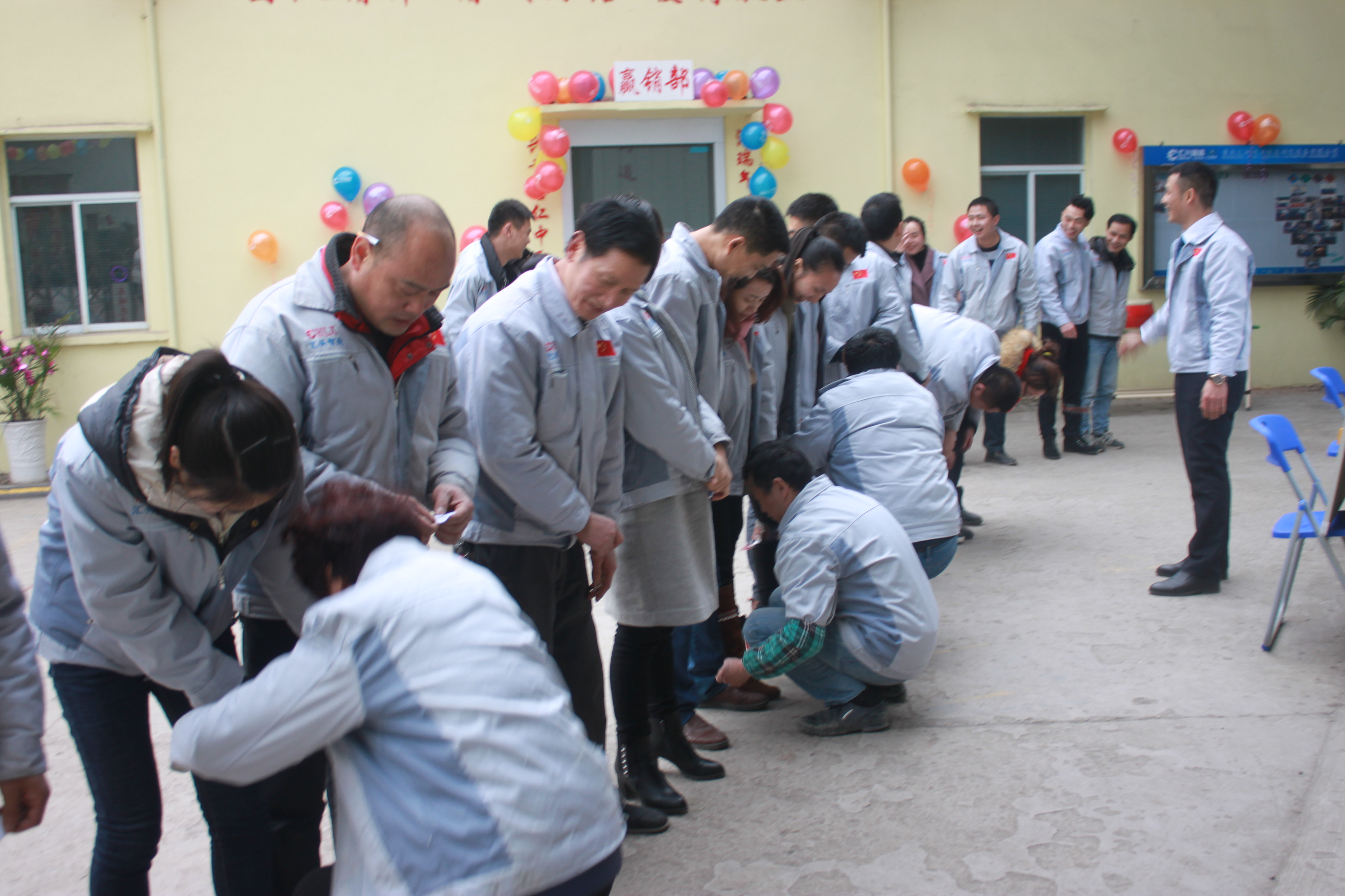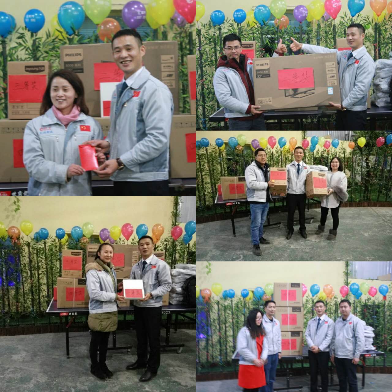 (眾人一條心)游戲準(zhǔn)備中,裁判們?yōu)檫x手們系上同心交織的紐帶 匯利興女戰(zhàn)士敲擊士鼓,士氣比武器更重要 會(huì)議召開前對(duì)企業(yè)三道(人道、孝道、商道)行三鞠躬 年度盛會(huì)由主持人劉園園上臺(tái)正式拉開序幕,會(huì)議前我們一起回眸2016年工作縮影,回眸了與匯利興大家庭的交集。 會(huì)議上,胡總經(jīng)理表示:2017年新起點(diǎn)的一系列規(guī)章制度、員工薪酬福利制度、員工職位考核制度,回首了2016年匯利興的成長與發(fā)展,3月14日公司搬址、傳祺戰(zhàn)車加入、倉儲(chǔ)及系統(tǒng)完善,2017年展望與目標(biāo)。同時(shí)表示感謝大家在2016年中的包容與支持同時(shí)也相信大家在2017年能一起攜手完成我們的目標(biāo)及挑戰(zhàn)。此后各部門代表發(fā)言總結(jié)2016年展望及2017年每月業(yè)績目標(biāo)。 匯利興全體戰(zhàn)士一起回眸2016年與匯利興大家庭的交集 隨著年會(huì)的氣氛越來越濃厚,接下來由胡總經(jīng)理一一頒發(fā)獎(jiǎng)金及揭曉年會(huì)大獎(jiǎng)獲者。獎(jiǎng)金頒發(fā):最佳付出獎(jiǎng)、最佳責(zé)任獎(jiǎng)分別是劉元平與石樂歡戰(zhàn)士,在此感謝兩位家人的奉獻(xiàn)與付出。 在你們愛家的同時(shí)匯利興這個(gè)家會(huì)更加愛你們。 胡偉路總經(jīng)理與“最佳責(zé)任獎(jiǎng)”榮獲者石樂歡同框合影 胡偉路總經(jīng)理與“最佳付出獎(jiǎng)”榮獲者劉元平同框合影 年會(huì)大獎(jiǎng)揭曉,胡總經(jīng)理一一揭曉大獎(jiǎng)獲者,此次大獎(jiǎng)由26個(gè)英文字母之一相繼而出,獲獎(jiǎng)組圖以下: 胡偉路總經(jīng)理與年度盛會(huì)大獎(jiǎng)獲得者合影圖(特等獎(jiǎng)、一等獎(jiǎng)、二等獎(jiǎng)、三等獎(jiǎng)、四等獎(jiǎng)) 年度盛典活動(dòng)逐漸接近尾聲,活動(dòng)以“畫鼻子”游戲拉開帷幕。即使看不見光明,只要心中有信仰、信念那也將是一個(gè)通往前方的航燈。 匯利興大家庭年會(huì)團(tuán)圓飯圖貌 隨著年飯的結(jié)束,2016年盛會(huì)圓滿結(jié)束?;厥走^去,放眼未來,2016年已逝去的,我們不再留戀,2017年的到來我們?nèi)ビ樱灰驗(yàn)樵谛碌囊荒暧形覀兊哪繕?biāo)及夢想我們要一同去創(chuàng)造去實(shí)現(xiàn)它,實(shí)現(xiàn)中國智能裝備全產(chǎn)業(yè)鏈集成智造標(biāo)桿,繼續(xù)引領(lǐng)行業(yè)的發(fā)展。同時(shí)在此感恩所有對(duì)匯利興關(guān)懷及支持過的您們,正是因?yàn)橛辛四鷤兊闹С植诺靡宰寘R利興茁壯成長,才能讓匯利興在行業(yè)道路上越走越穩(wěn)。感恩您們......
